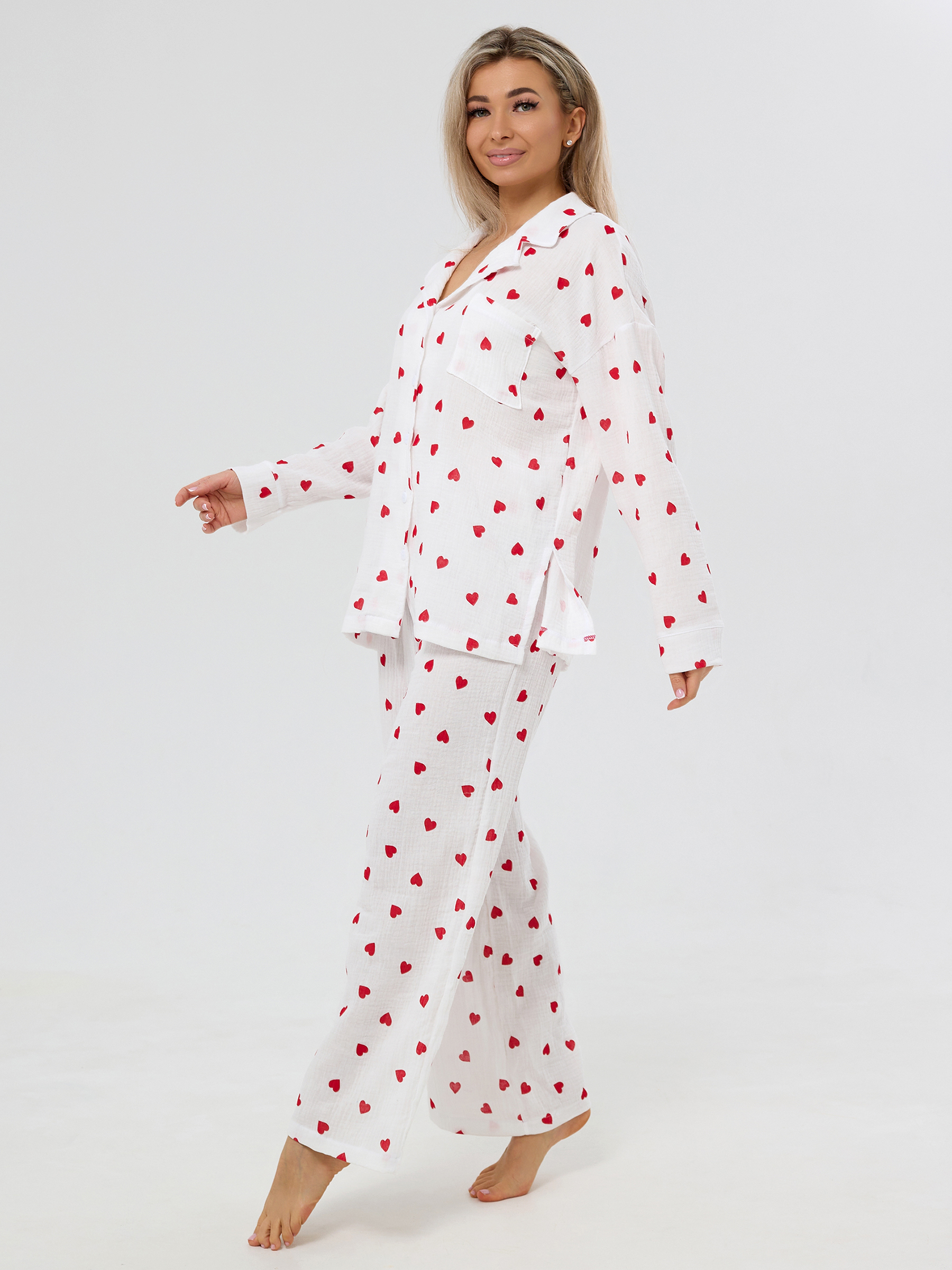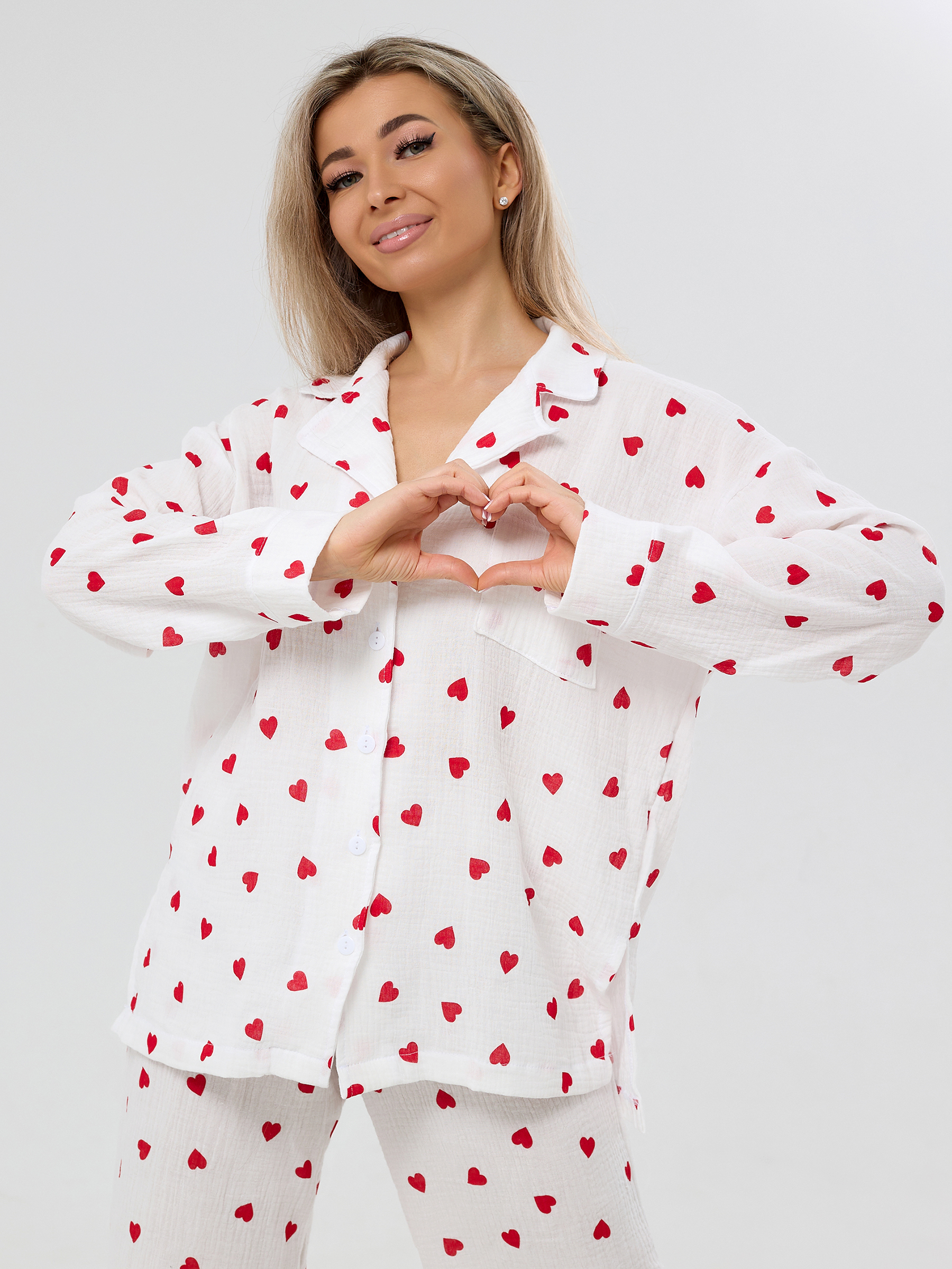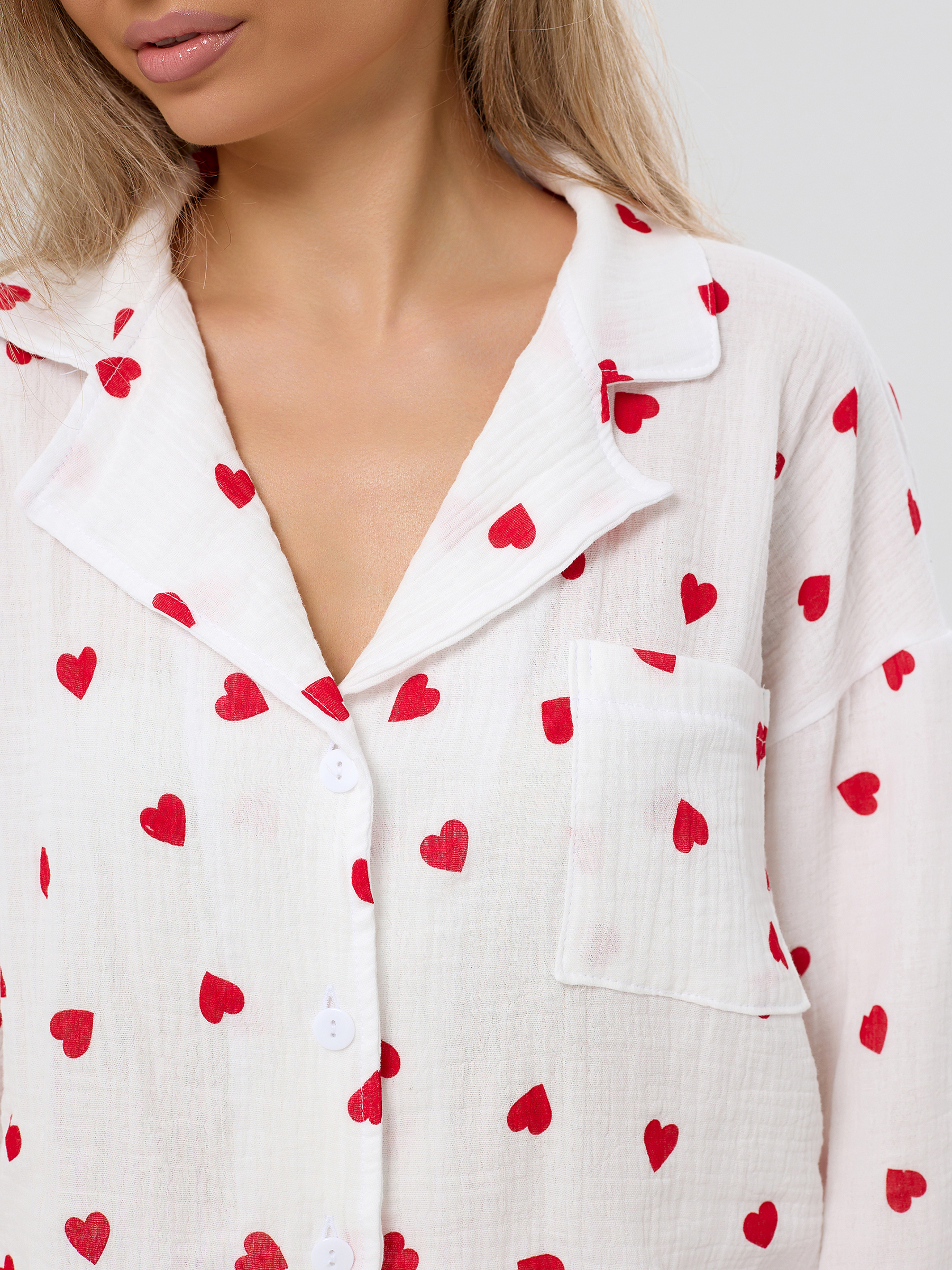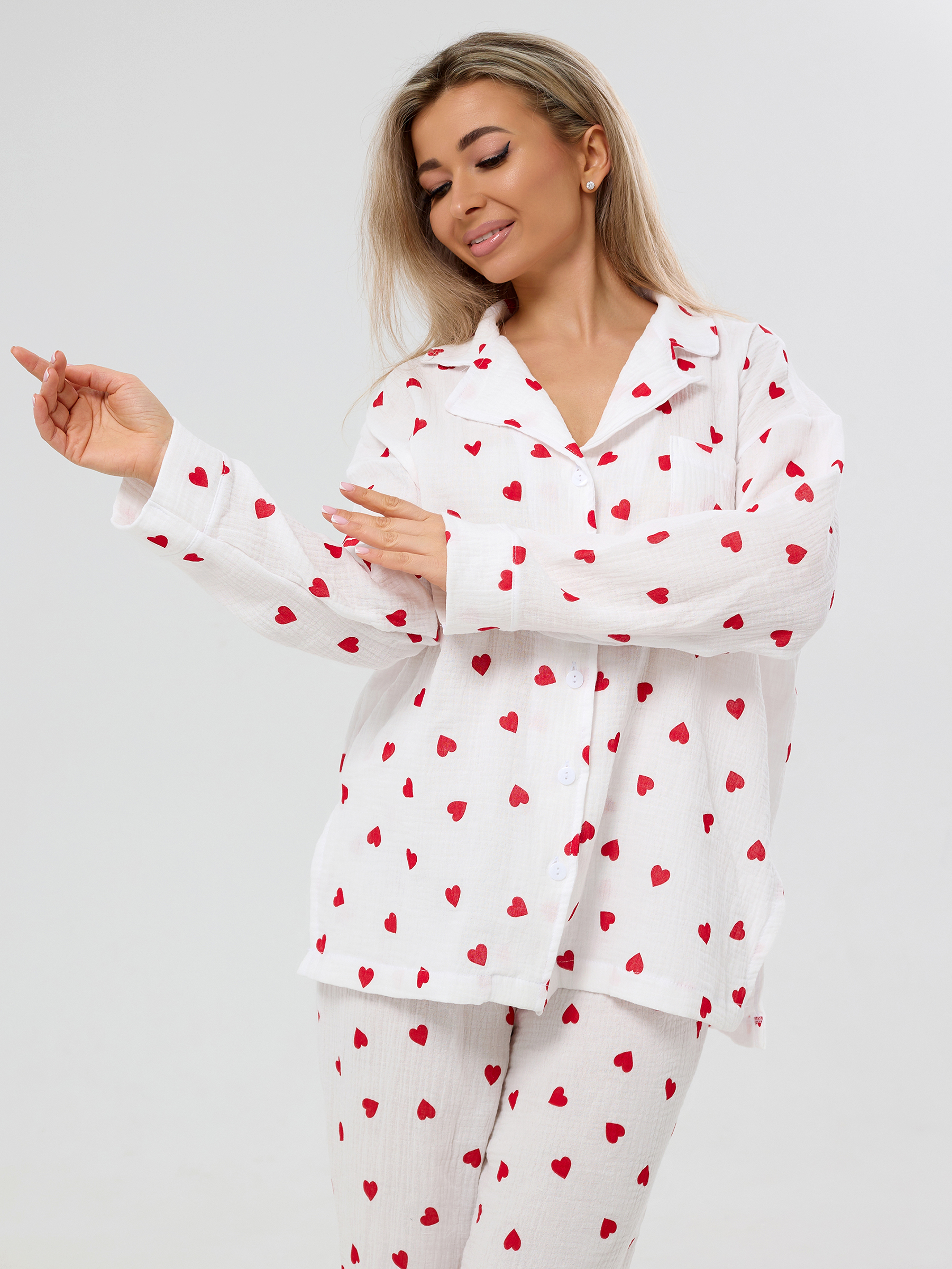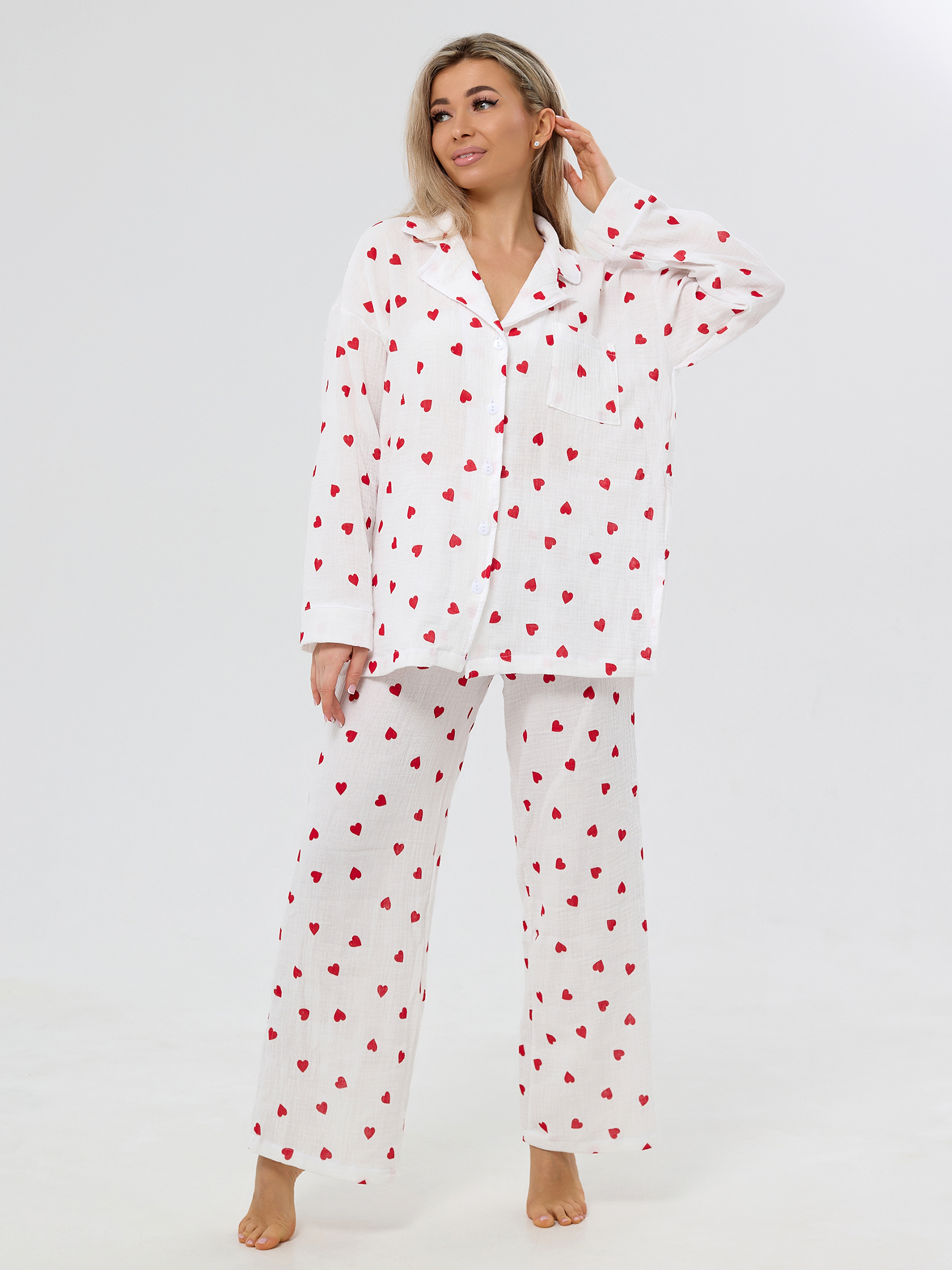 Пижама из муслина женская Сердечки